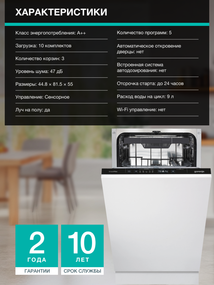 | Вместимость | 10 комплектов |