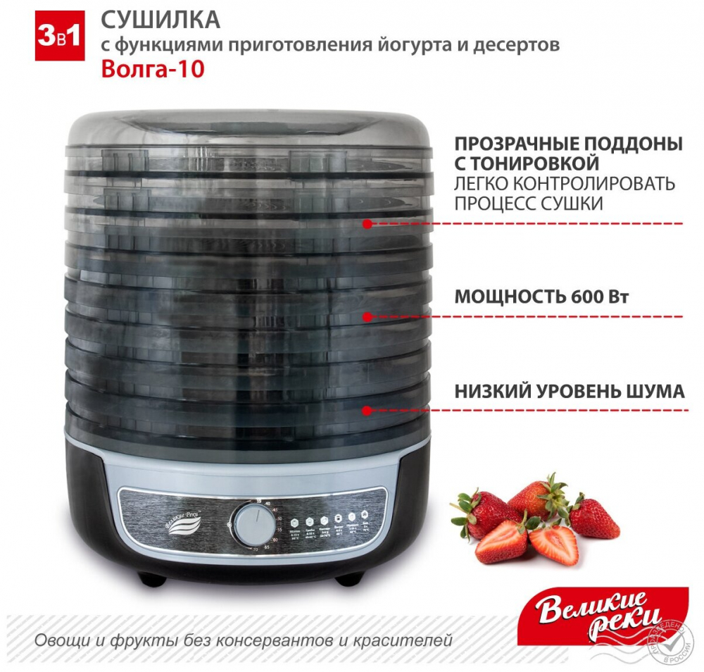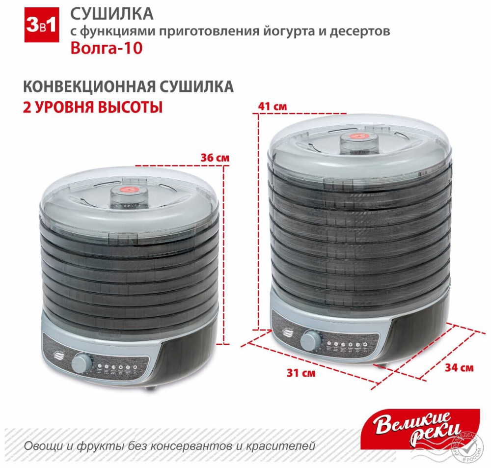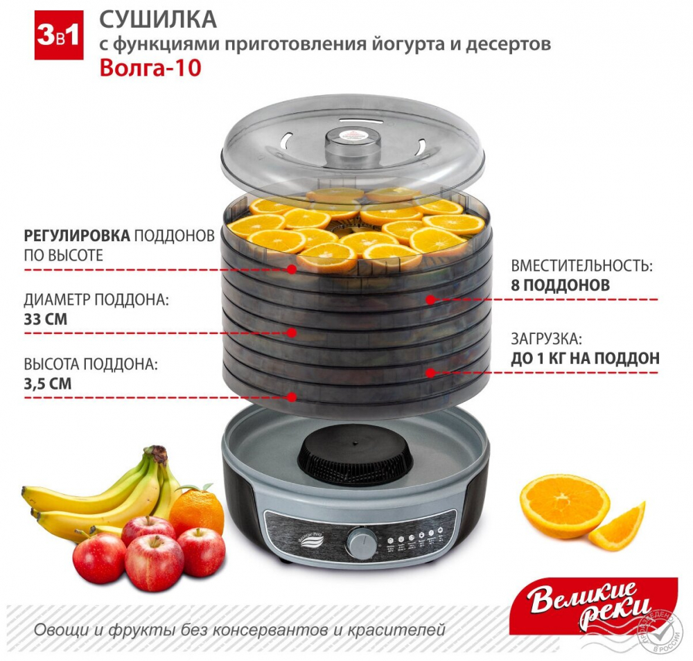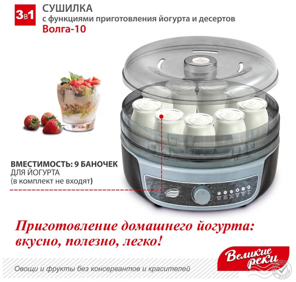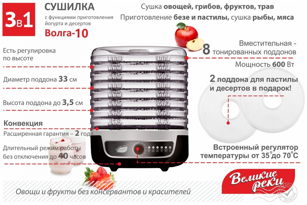 | тип: конвективная , регулировка температуры сушки , материал поддонов: непрозрачный пластик , число поддонов: 8 , мощность: 600 Вт , управление: механическое , особенности: защита от перегрева , дополнительные функции: приготовление йогурта , приготовление пастилы | |
